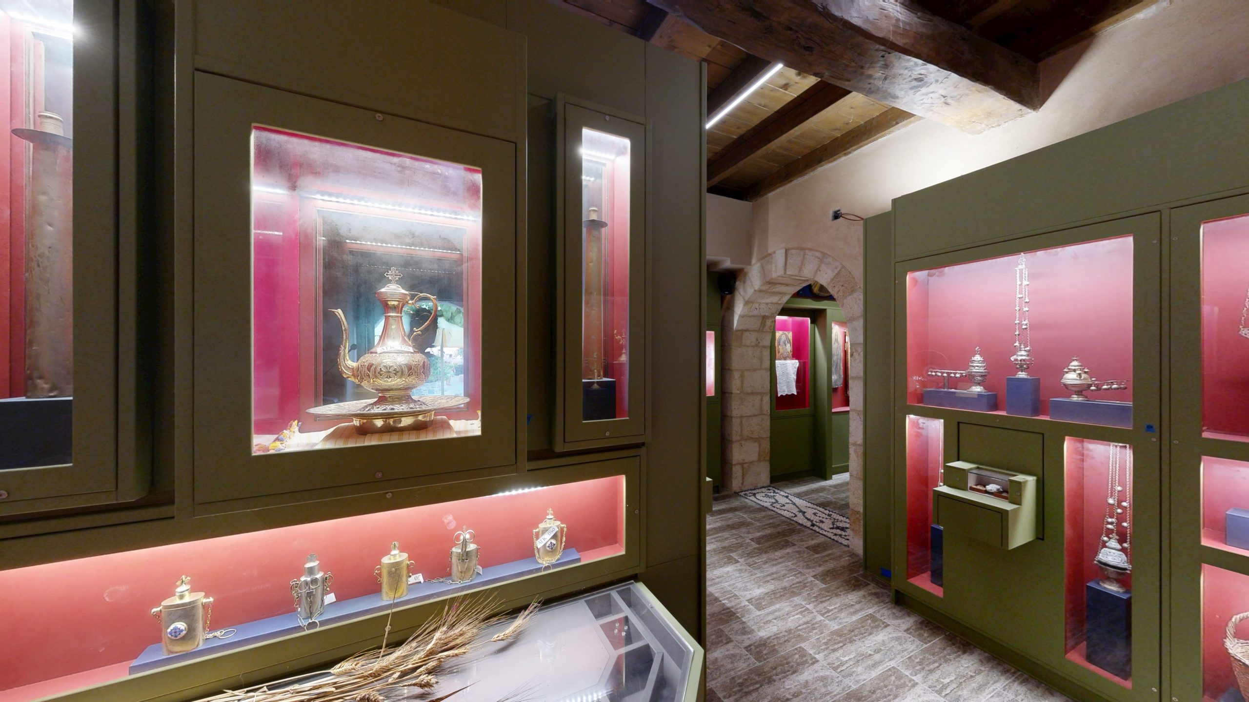 Αυτή τη σύμπραξη όλης της Κτίσης και τη μυστηριακή συνομιλία της με τον Θεό επιχειρεί να παρουσιάσει η ενότητα, μέσα από αριθμό εκκλησιαστικών αντικείμενων, που διαχωρίζονται θεματικά ανάλογα με τα φυσικά υλικά με τα οποία συνδέονται και τη λειτουργική τους χρήση, σε πέντε ξεχωριστές υποενότητες: Άγιο Μύρο, Κερί, Έλαιον, Θυμίαμα, Σίτος και Οίνος.